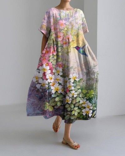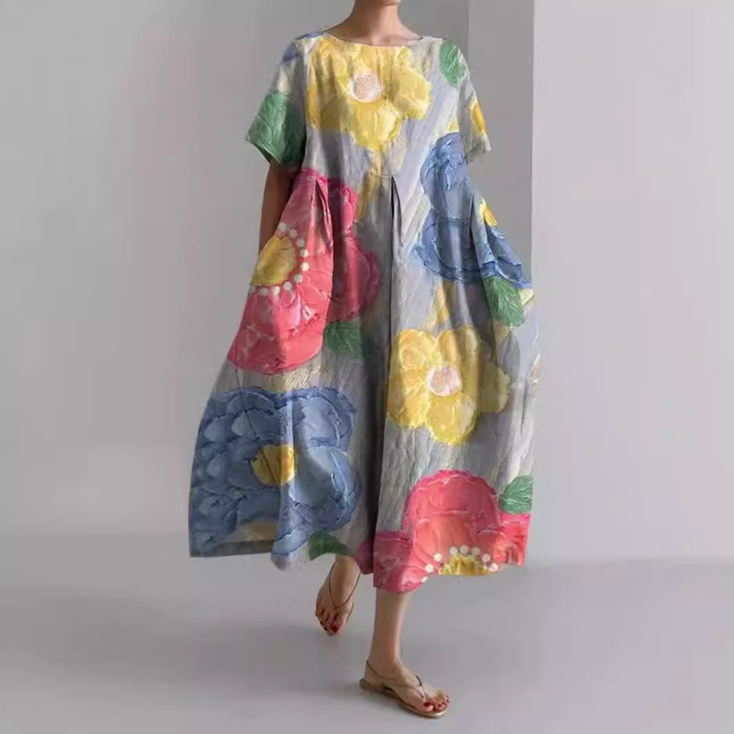 3D Printed Round Neck Short Sleeve Plus Size Dress Women